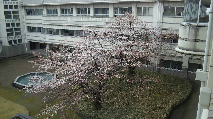 明日の入学式にむけて桜の花が順調に咲いてきた模様・・・。